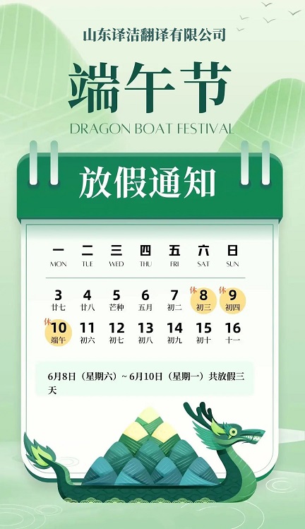 譯潔天津翻譯公司端午節放(fàng)假通(tōn↓₩<g)知(zhī)